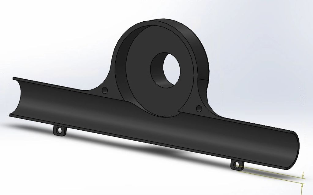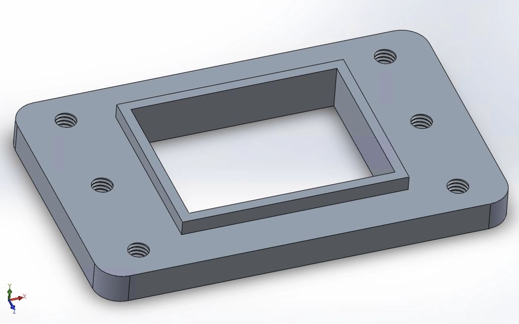 This piece sports a lock-and-key mechanism on the bottom for easy assembly, as well as screw placement for the waveguide at the top of the bracket.