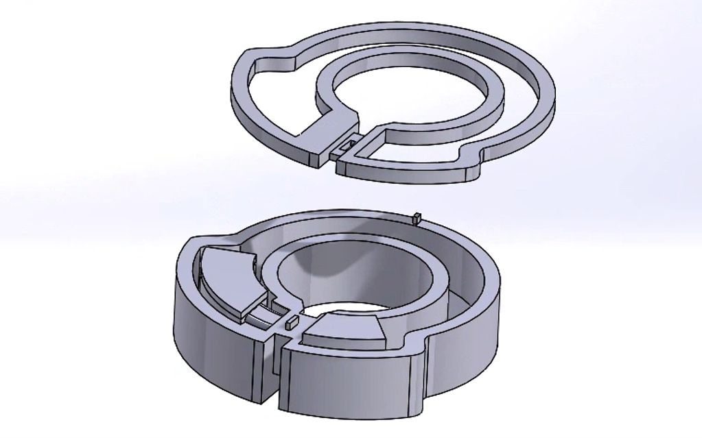 Earlier version of a mold for the outer portion of the band. The mold was designed for easy pour/casting manufacturing.